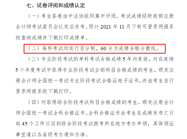 2021年cpa成绩标准及有效期: