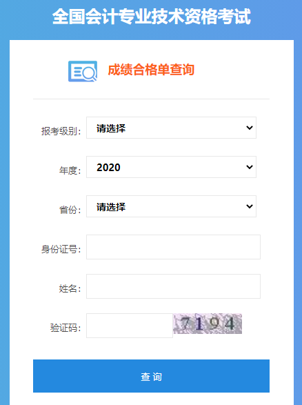 第三步:按要求分别输入“报考级别”、“年度”、“省份”、“身份证号”、“姓名”和“验证码”后,点击“查询”。